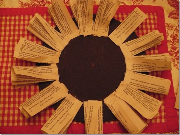 Book page wreaths have been around for quite some time and I’ve been wanting to make one. So I made one last night to relax and just work on something for fun for a change.